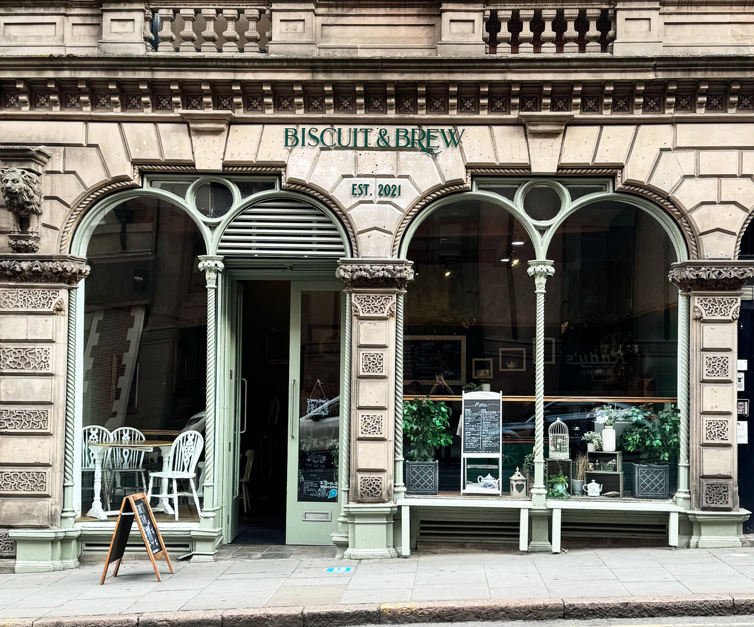 Find us at Biscuit & Brew Tea House, 5 Victoria Street, Nottingham NG1 2EW. Just a short walk from Old Market Square, we offer unique tea blends, hearty breakfasts, and sweet treats, with vegan and gluten-free options.